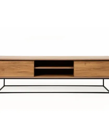 Meuble TV 2 tiroirs noyer/noir - 180x50x40 cm