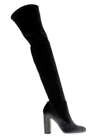 Cuissardes en Velours et Swarovski noir/gris - Talon 10 cm