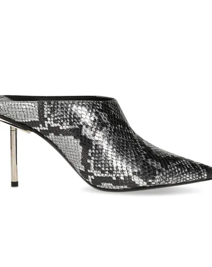 Mules en Cuir argentées - Talon 9.5 cm