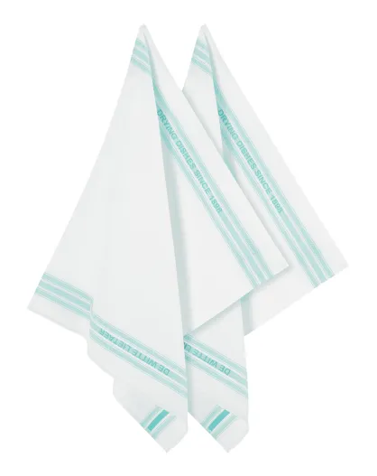 2 Torchons Dish blanc/turquoise - 65x70 cm