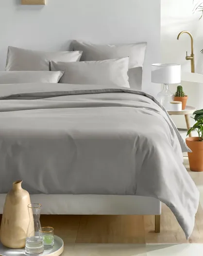 Parure housse de couette 100% Satin de Coton Olivia gris clair