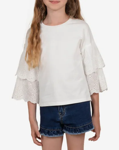 T-Shirt en Coton mélangé brodé blanc