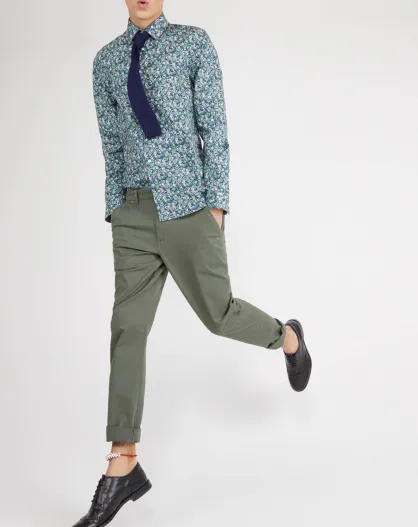 Pantalon en Lin & Coton Pupant tapered vert/gris