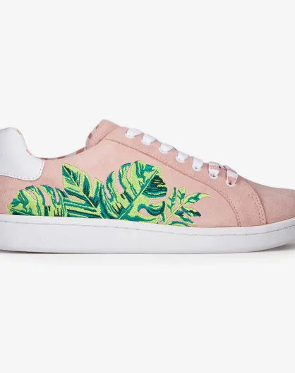 Sneakers en Velours de Cuir Faleaf roses
