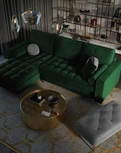 Canapé d'Angle Gauche Convertible avec Coffre de Rangement Santo 5 Places en Velours vert bouteille - 240x175x96 cm
