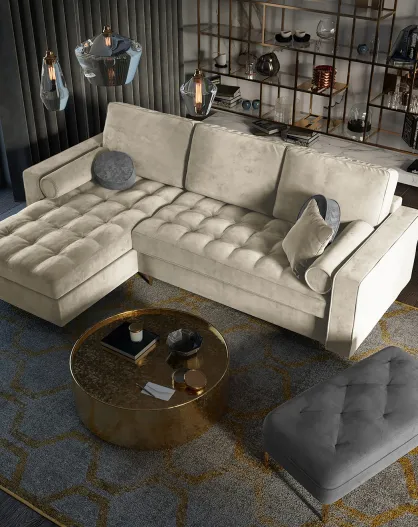 Canapé d'Angle Gauche Convertible avec Coffre de Rangement Santo 5 Places en Velours beige - 240x175x96 cm