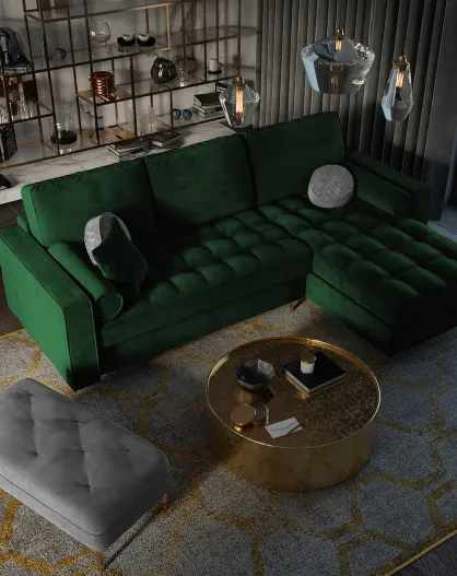 Canapé d'Angle Droit Convertible avec Coffre de Rangement Santo 5 Places en Velours vert bouteille - 240x175x96 cm