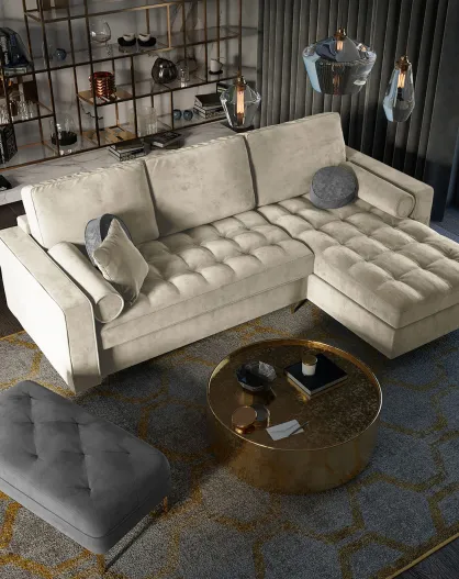 Canapé d'Angle Droit Convertible avec Coffre de Rangement Santo 5 Places en Velours beige - 240x175x96 cm
