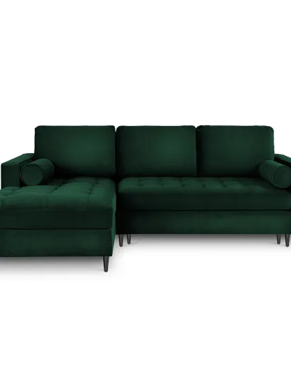 Canapé d'Angle Gauche Convertible avec Coffre de Rangement Santo 5 Places en Velours vert bouteille - 240x175x96 cm