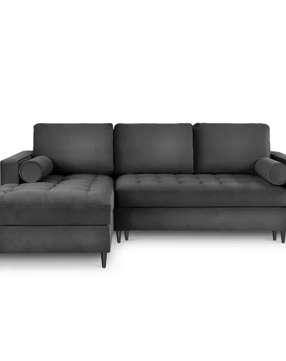 Canapé d'Angle Gauche Convertible avec Coffre de Rangement Santo 5 Places en Velours gris foncé - 240x175x96 cm