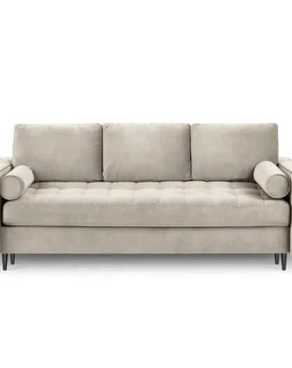 Canapé Convertible avec Coffre de rangement Santo 3 Places en Velours beige - 225x100x96 cm