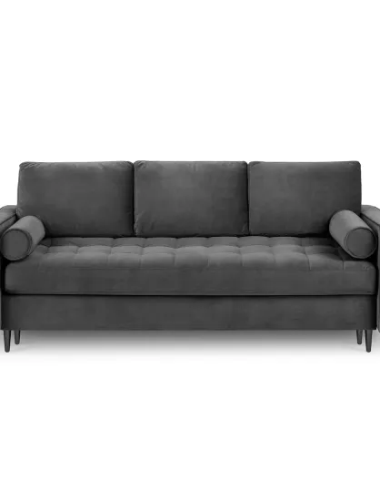 Canapé Convertible avec Coffre de rangement Santo 3 Places en Velours gris foncé - 225x100x96 cm
