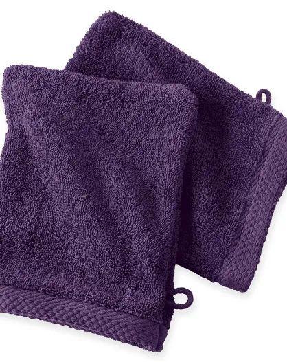 2 Gants de toilette aubergine - 16x21 cm