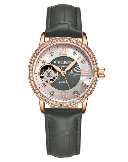 Montre Femme en Cuir Automatique Legacy noir/rosé