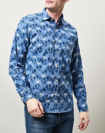 Chemise regular Paul imprimé flamant bleu/blanc