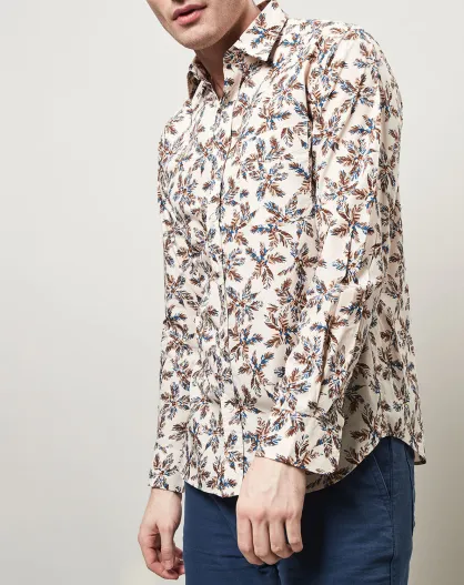 Chemise slim Storm imprimé palmiers beige