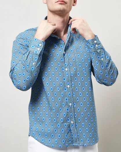 Chemise Regular Paul imprimé fantaisie bleu/kaki