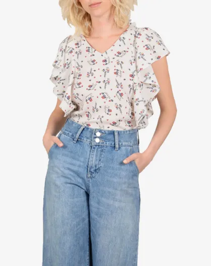 Top ample & fluide Sasha imprimé fleuri écru