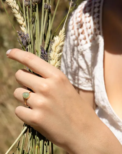 Bague ajustable Elena Aventurine verte en laiton doré