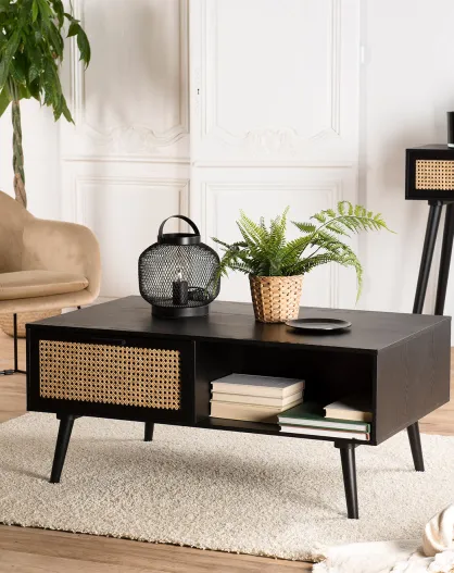 Table basse Angelo 2 Tiroirs Bois/Noir - 100x60x44.5 cm