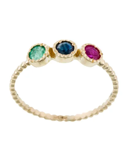 Bague Trio précieux Rubis, Saphir, Emeraude 0.11 ct or jaune