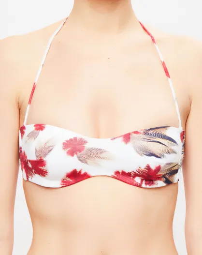 Haut de maillot bandeau Fleur de Plume fleuri blanc/rouge