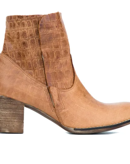Bottines en Cuir Tina imprimées croco camel - Talon 6.5 cm