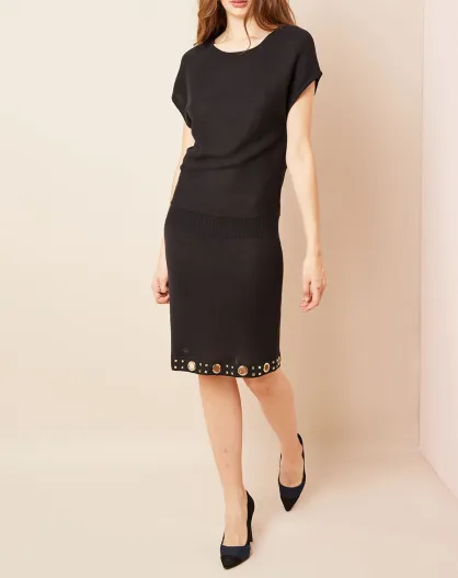 Robe maille fine à oeillets noire