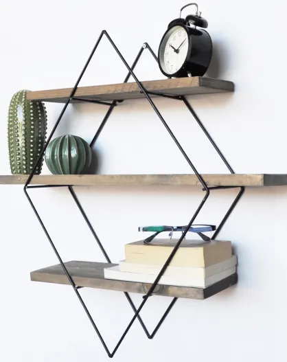 Étagère 3 étages losange noyer/noir - 62x42x15 cm