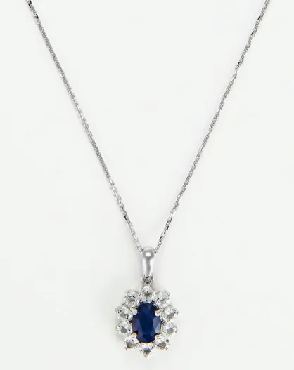 Pendentif Etoile Bleue Saphir 1.1 ct & Topaze Blanche 0.08 ct or blanc
