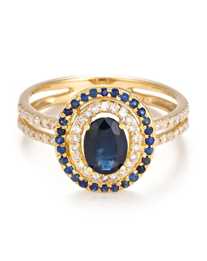 Bague Firenze Diamant 0.25 ct Saphir 0.17 & 1.08 ct or jaune
