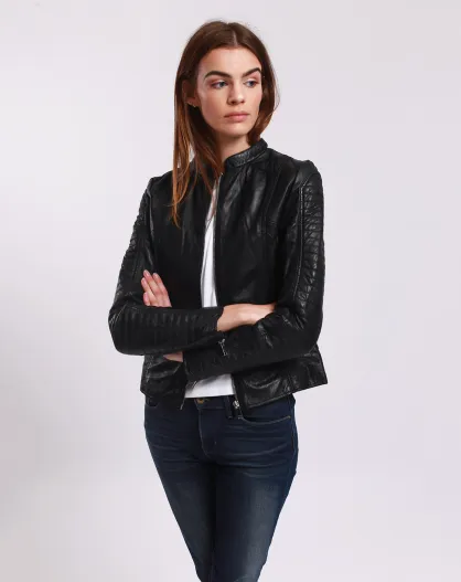Veste en Cuir Laila noire