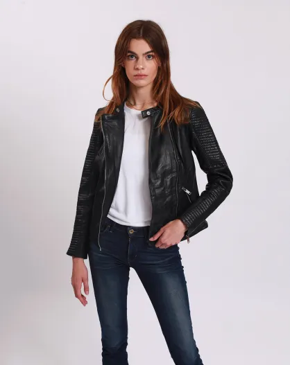 Veste en Cuir Lambertine noire