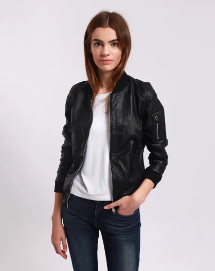 Bombers en Cuir Laude noire