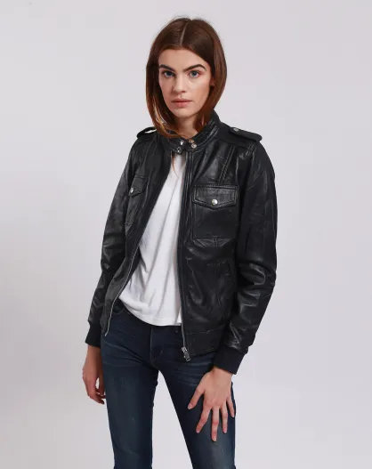 Veste en Cuir Leire bleu marine