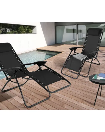 2 Fauteuils Relax de Jardin noirs - 70x160x82 cm