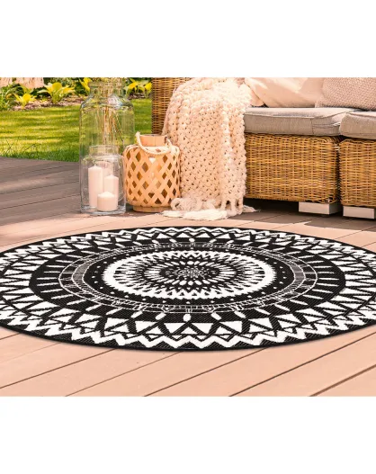 Tapis extérieur rond Maori noir/blanc - D.150 cm