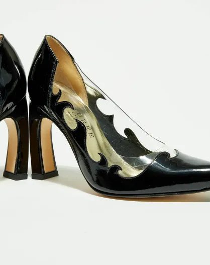 Escarpins en Cuir Vernis Liama noirs - Talon 9 cm