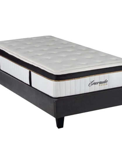 Ensemble Matelas Mémoire de Forme Emeraude + Sommier Kit blanc/bleu/gris - 90x200 cm