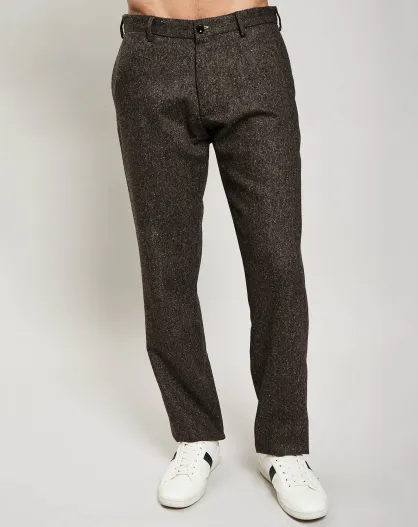 Pantalon en Laine & Soie mélangées marron foncé mélangé