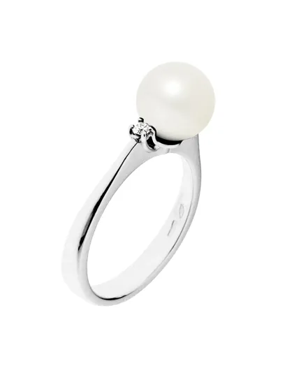 Bague Or Blanc, Diamants 0.06 ct et Perle d'Eau Douce blanche