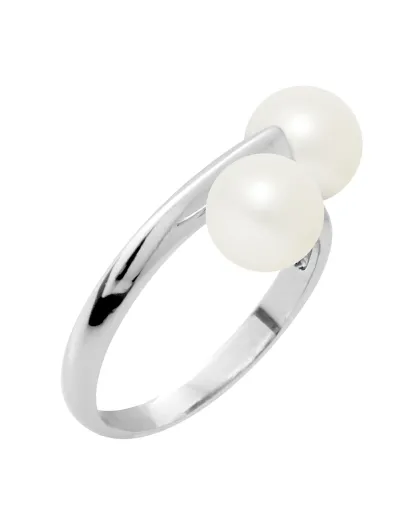 Bague Toi & Moi Argent Perles d'Eau Douce blanches