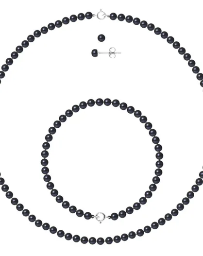 Parure Collier, Bracelet & Boucles d'oreilles Argent Perles d'Eau Douce noires