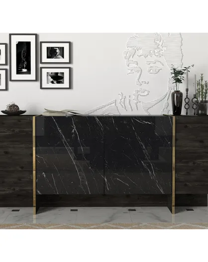 Buffet Veyron noir/doré - 185x75x46.6 cm