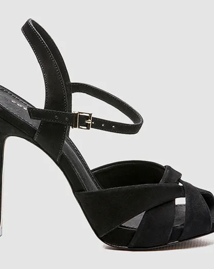 Sandales en Velours de Cuir Jiha noires - Talon 10 cm