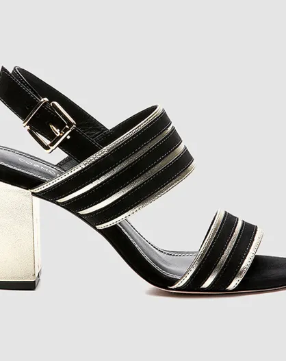 Sandales en Velours de Cuir Kilit noir/doré - Talon 9 cm