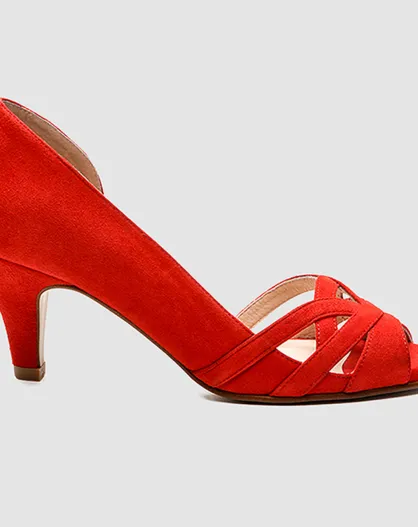 Escarpins en Velours de Cuir Laveda corail - Talon 7 cm