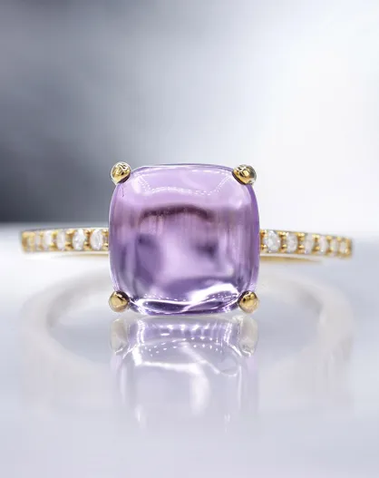 Bague Rose Dragée or jaune Diamants 0.11ct & Améthyste 4.4 cts