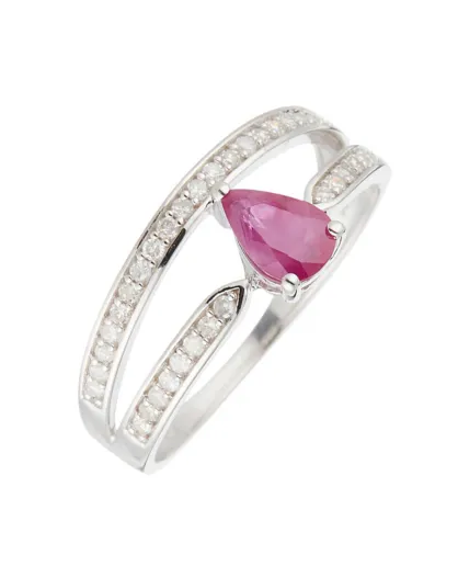 Bague Eugenie Or Blanc Diamants 0.2 ct & Rubis 0.6 ct
