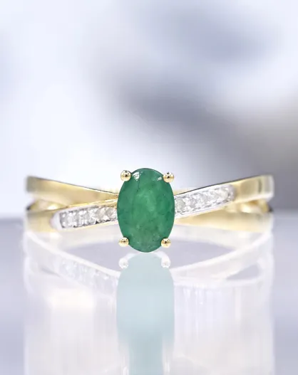 Bague Ambi Diamants 0.04 ct & Emeraude 0.6 ct or jaune